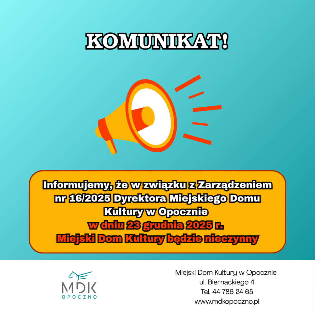 Kategoria: Aktualności Dodano: 19 grudnia 2025 Wyświetleń: 4 Autor: MDK OPOCZNO