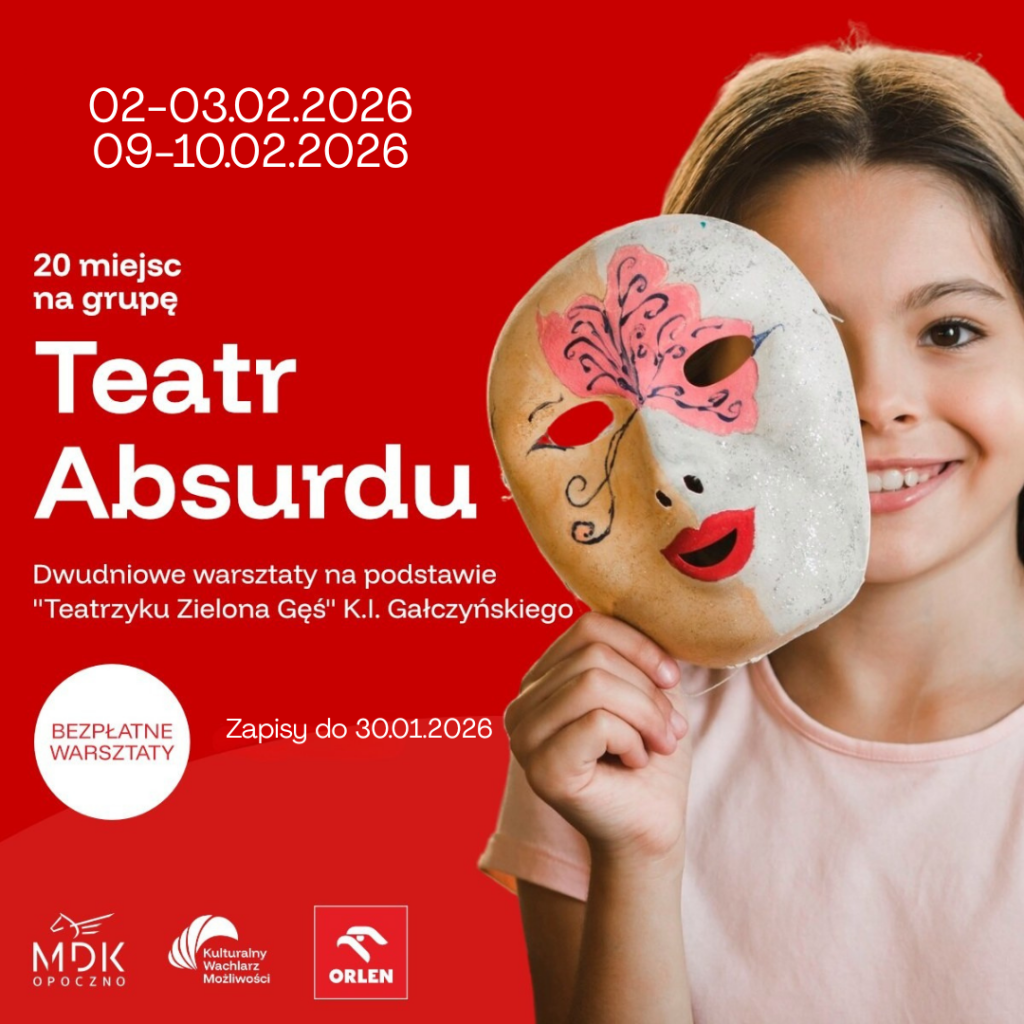 Miejski Dom Kultury w Opocznie zaprasza na warsztaty teatralne dla dzieci i młodzieży do 19 r.ż. organizowane w ramach programu ,,Kulturalny ORLEN".