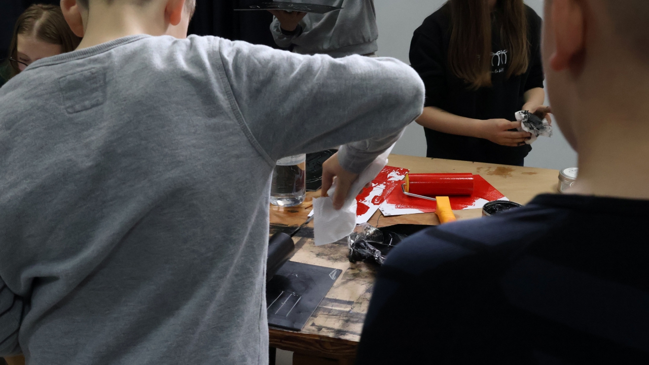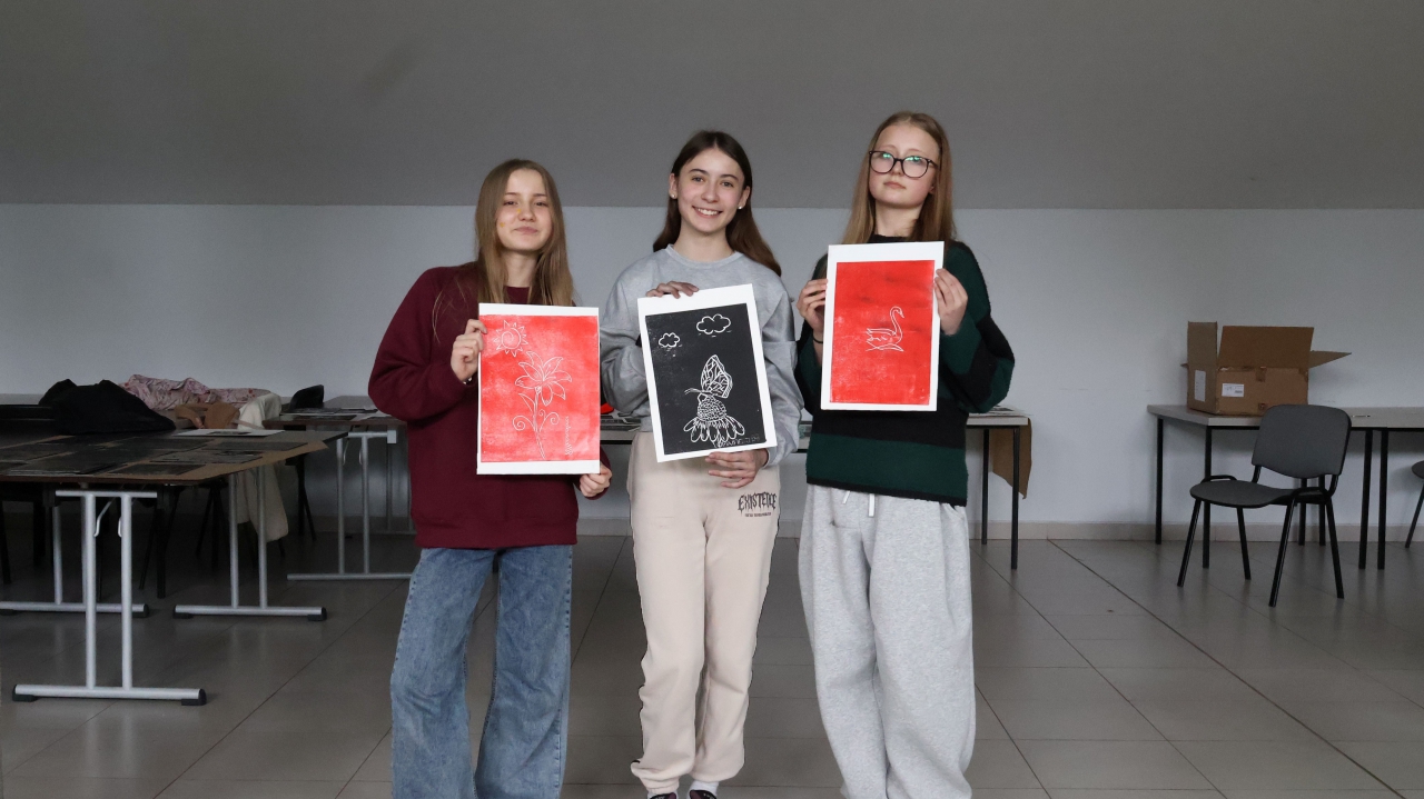Zajęcia poprowadziła instruktor plastyki Agnieszka Kloczkowska. Linoryt to technika polegająca na żłobieniu obrazów w linoleum i wykonywaniu odbitek na specjalnej prasie.